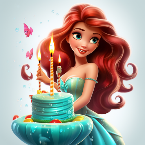 draw the little mermaid and a birthday cake disney style, disney inspired, high resolution to create clip art