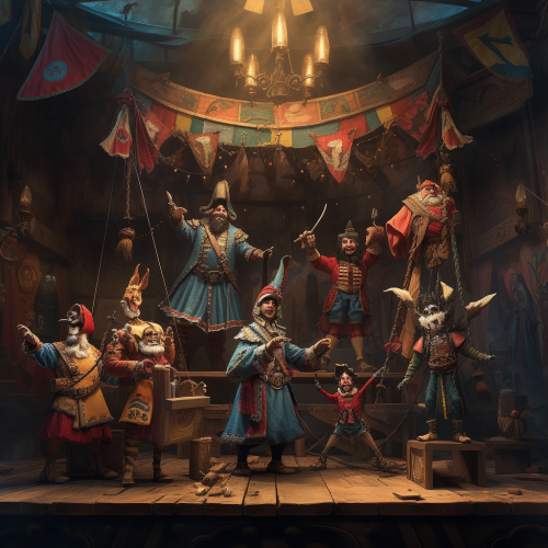 greedy wolf on bags of gold give a one coin to little red riding hood dark purple illustration --ar 2:3 --v 5.2