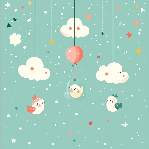Clean and child-friendly A4 page background design for a kindergarten newsletter. The background should include soft pastel colors such as green, light blue or pink. Include subtle patterns such as dots or circles and adorable illustrations such as a balloon, toys, clouds. The design should fit a text layer, with wide margins and a spacious central area. The overall look should be warm and inviting, perfect for communicating with parents, Create the frame with only white background --no human --niji 5 --ar 16:23 --s 200