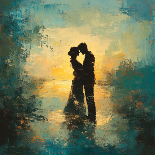 A heartfelt and emotive scene that captures the essence of enduring connection and the idea of no final goodbyes. The setting could be a meaningful, timeless place like a serene park, a quiet seaside at sunset, or a warm, inviting home. The central focus is on figures in a comforting, reassuring pose, such as an embrace, holding hands, or sharing a gentle moment together. The background features soft, warm colors like gentle golds, deep blues, and comforting greens to enhance the sense of lasting connection and reassurance. Subtle details like soft light glows, symbolic elements like infinity symbols, or lingering light trails add to the feeling of continuity and the absence of farewell. The overall mood is warm and reassuring, capturing the essence of a bond that persists despite the lack of a formal farewell.