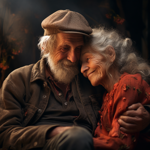A tender and intimate scene that captures the essence of companionship and support. The setting could be a cozy, serene environment like a peaceful park bench at sunset, a quiet beach with two figures sitting close together, or a softly lit room where two people are sharing a comforting moment. The central focus is on figures side by side, engaged in a supportive or affectionate gesture, such as sitting closely, holding hands, or leaning on each other. The background features warm, soothing colors like soft blues, gentle pinks, and warm grays to enhance the feeling of closeness and comfort. Subtle details like soft light glows, gentle textures, or shared personal items add to the sense of togetherness and support. The overall mood is warm and reassuring, capturing the essence of being there for someone and sharing a close bond.
