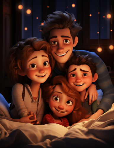 married couple in their 50s with a 12 year old son and a 17 year old daughter, comic style --s 250