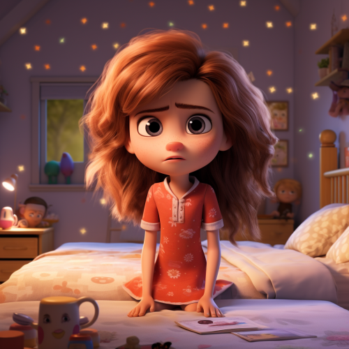 10 year old girl with brown hair and big brown eyes, cuddling with a black and whit sheepadoodle on her bed, in her bedroom, photorealistic. --ar 16:9