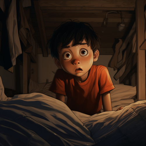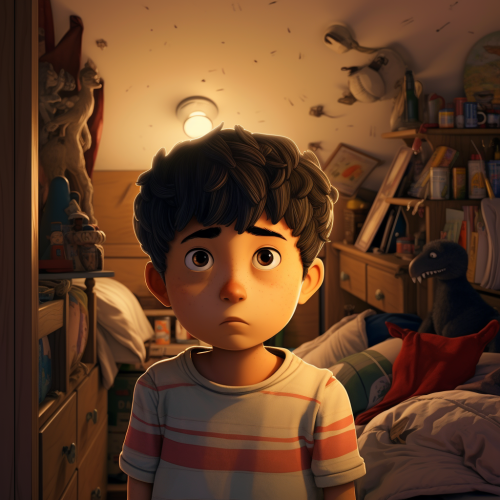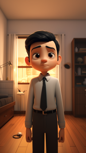 ANIMATION OF AN ASIATIC, 10 YEAR OLD CHILD who sneaks away, hides his OWN SECRET, stays in his room, doesn't let his parents see it