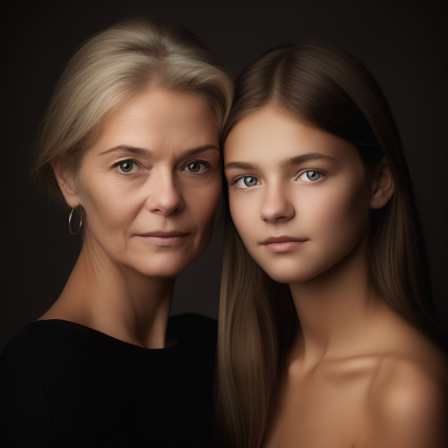 a family portrait, 2 asian mom, 1mulatto, in the style of asian-inspired, lence face, fujifilm, 135 film camera, the sun shining, realistic photography, surreal, high detail, 4K--ar 3;4