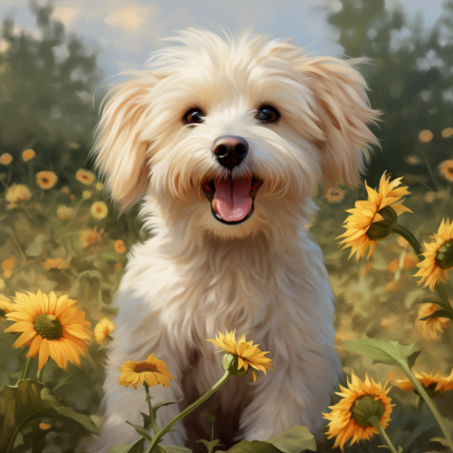 Show Daisy's happy expression and wagging tail as she looks at her owner. Highlight the love and bond between Daisy and her owner."