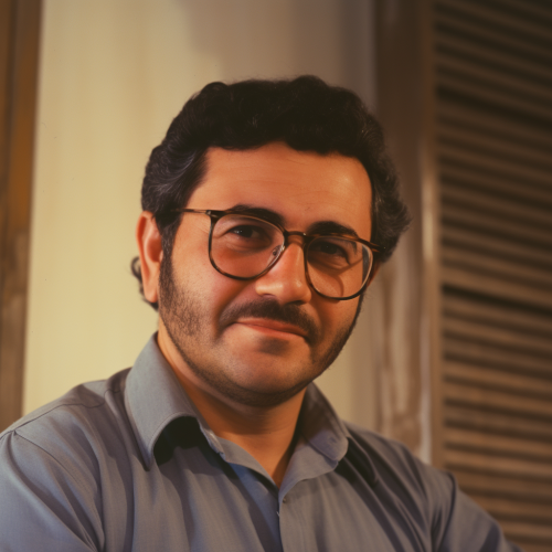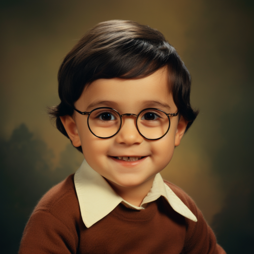 My lovely iraqi father was born in 1956, and he has white skin, big brown eyes, black hair, glasses, a big smile, a round fat face, and a red cheek.