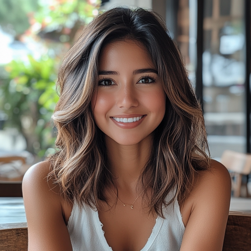 A realistic Instagram profile photo of a woman named Susana, 35 years old, with a friendly and approachable expression. She has a warm smile, light makeup, and medium-length wavy hair. She's wearing casual yet stylish clothing, set against a soft, natural background. In the corner of the image, the Instagram logo is subtly placed, integrating seamlessly into the profile picture design. The overall vibe is professional, approachable, and relatable, perfect for a social media presence.