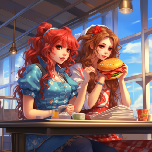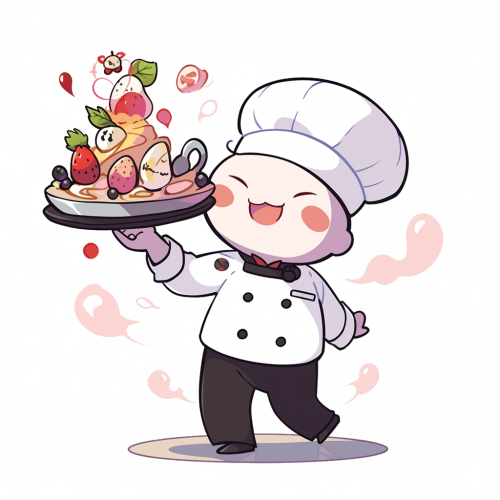 Corky cute Action: Tasting Food Wearing: Restaurant attire Expression: Enjoying digital drawing cartoon sticker image black border color full body flat texture cartoon style Transparent Background 2D --niji