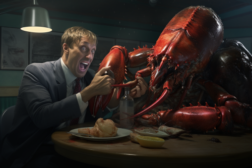 cormac mcarthy and tony hawk eating a giant lobster --ar 3:2