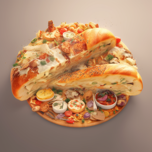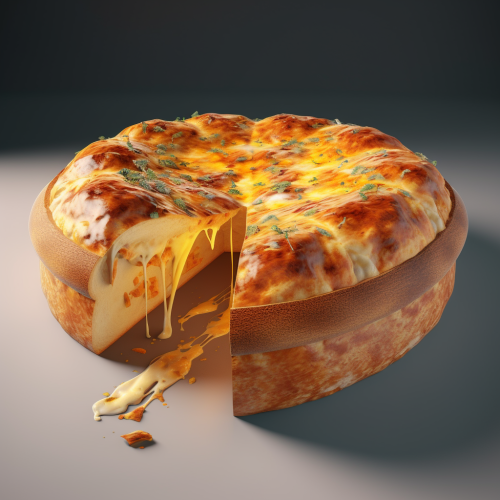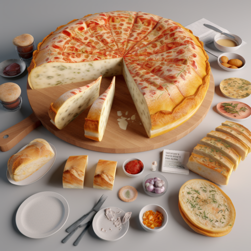 Delicious-looking pizza bread, bread, Paris Baguette, full of cheese, Blender 3D rendering, sticker form, 100 types, top-down perspective, side view, and a 45-degree angle view. --v 5.0
