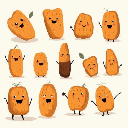 dried sweet potatos;hand-draw;illustrator;cute;warm;festive;cartoon;flat style;dried sweet potatos looks like children; --v 5.2