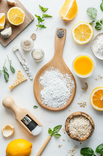 background of cookbook ''Healthy DIY Tips And Recipes For Home And Beauty Hacks'' --no text fonts letters watermark words typography slogans signature --ar 2:3 --v 6.1