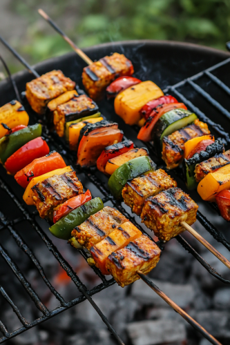 background of cookbook ''Popular Vegetarian Bbq Grilling Recipes'' --no text fonts letters watermark words typography slogans signature --ar 2:3 --v 6.1