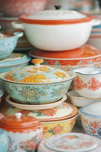 background of cookbook ''Popular The Vintage Pyrex Patterns You Remember from Grandmas House Recipes'' --no text fonts letters watermark words typography slogans signature --ar 2:3 --v 6.1