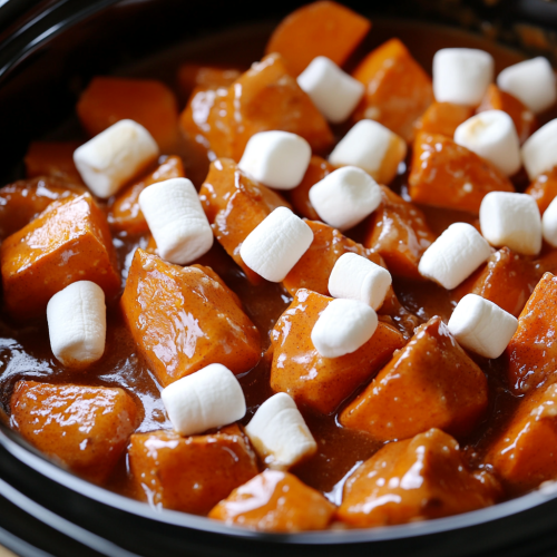 Create an image showcasing a bowl of popcorn drizzled generously with melted caramel and gooey marshmallow. The popcorn is fluffy and white, with a warm, golden-brown caramel coating that glistens and stretches in sticky strands, adding a deliciously gooey texture. Display the popcorn in a simple, clean white bowl to highlight the contrast between the caramel and popcorn. Above the bowl, add the text 'Gooey Marshmallow Caramel Popcorn' in bold, playful font, with a smaller subtitle below listing a few ingredients such as '16 oz mini marshmallows, ¾ cup light brown sugar,' in a cozy, welcoming style