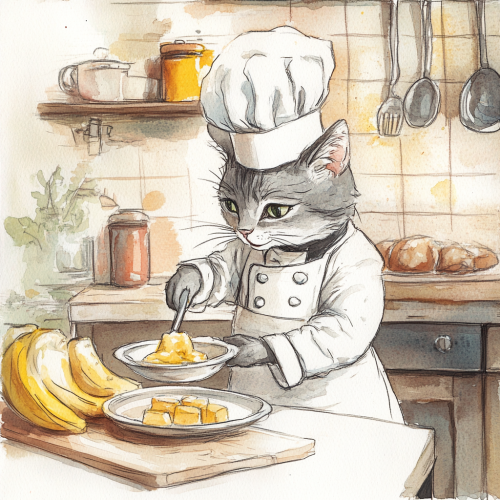 The image will feature a cartoon-style rooster with a prominent comb, set against a clean and simple kitchen island background. The three health benefits will be incorporated as blank spaces for easy editing.