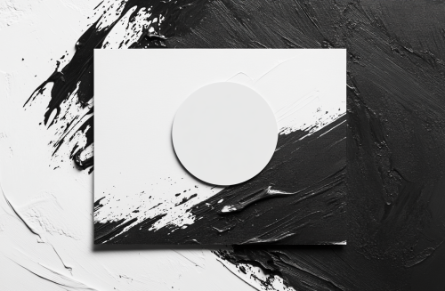 Discount card design for a restaurant, a place for a round logo in the center, black and white colors, smeared oil paint minimalism, without text --ar 20:13