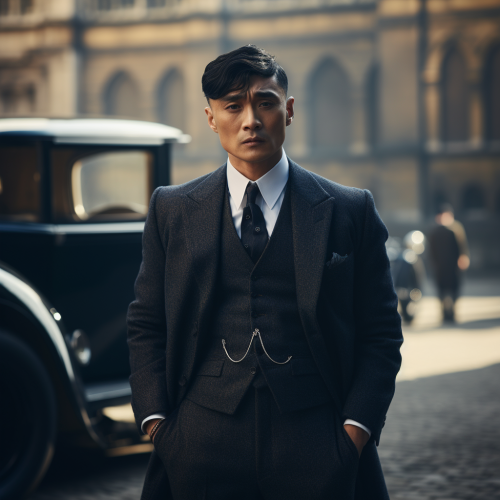 realistic digial painting of man in peaky blinders style, 1920s fashion suit, smoking --aspect 3:2