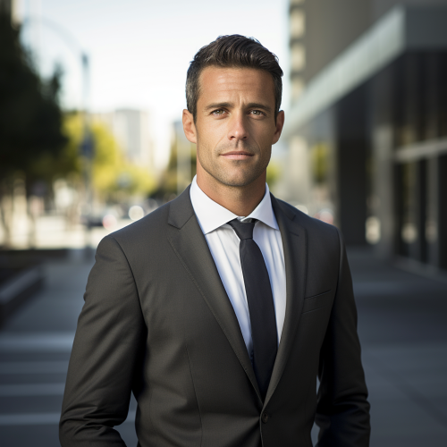 Picture a charismatic man in a sharp suit, with a goatee and stylish sunglasses, evoking the essence of Tony Stark, walking through the high-tech and innovative environment of Silicon Valley. He's examining a futuristic gadget with a look of approval. The backdrop is a blend of glass buildings and green spaces. The Polaroid captures a moment of genius at work, surrounded by the latest technological advancements. --v 6.0