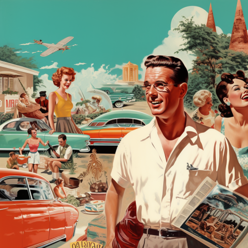 A 1950s classroom with a kid raising his hand, seen over the shoulder of a teacher calling on him. The room has vintage decor: chalkboard, wooden desks, and sunlight streaming through large windows. The kid has an eager expression, and the teacher is partially visible in the foreground. Nostalgic, warm lighting, retro school vibes, glibatree prompt, soft focus, classic 50s classroom scene --ar 16:9 --v 6.1 --s 250