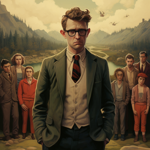 On the cover, three very handsome men with different looks are depicted: one with honey-colored hair and green eyes, another with black curly hair and blue eyes, and the third with a short red beard and gray eyes. All three exude confidence, style, and charm, creating a harmonious and attractive overall impression. In the background, you can see a magnificent palace resembling a magic academy, with tall towers, elegant decorations, and mysterious windows. In the distance, a forest stretches, framing the picture with natural beauty and magic. --ar 2:3 --style raw --v 6.1 --iw 0.5