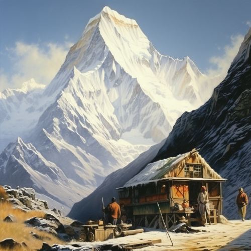 Créez une scène enneigée de l'Himalaya avec une boutique de la poste et un petit facteur courageux.