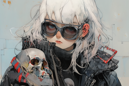 1980’s gothic anime art, woman holding cat, Japanese anime style, dark background