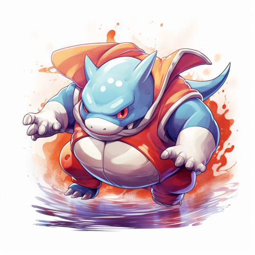 Create a dynamic action pose of a cartoon Pokémon with a sense of movement mega gulpin wearing cool clothes, the artwork should capture the essence of Akira Toriyama's iconic designs, with bold clean lines, vibrant color, on a white background --v 5.2