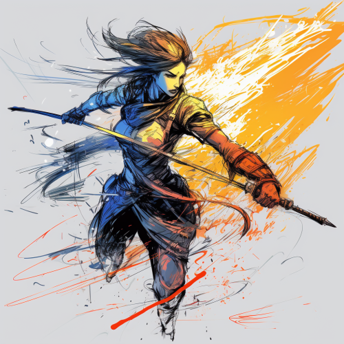 line drawing, character action design, , egaggerated expressive action pose shot, line draft, color pen sketch, manuscript,ancient femal soldier, comic
