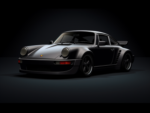 super clean minimalist modern matte black electric Porsche 930 EV reimagined concept design, isometric view, plain black background, --v 5.2 --ar 4:3