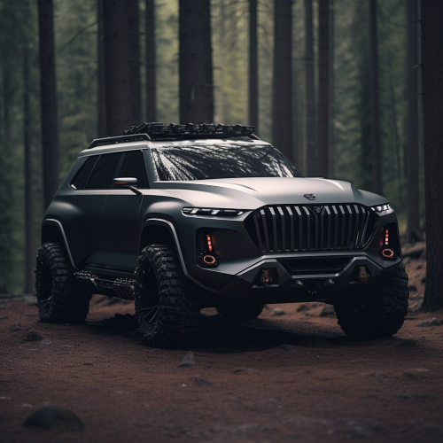 Award winning wide angle photography of a [Toyota Land Cruiser] 250 driving on a winter forest road at sunset, hyper detailed, ultra textured, cinematic lighting, dramatic lighting, natural lighting, octane rendering. Blurred Motion.