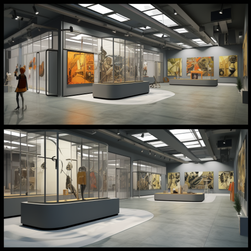 A shop three views of the art studio design, secend floors,below a single room,double-storey, 5 meters wide, 15 meters long, 6 meters high, four hooms,artistic style, reasonable layout,classroom, toilet, corridor, reception area, super Clear, Art Deco decor-- v4