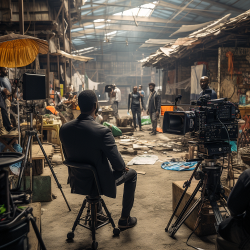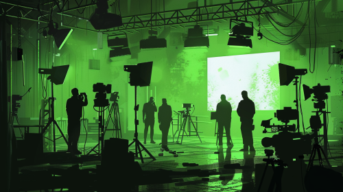 a film set, with actors in the green screen studio, authentic character illustration in GTA V style, by Anthony MacBain, — style raw --ar 16:9