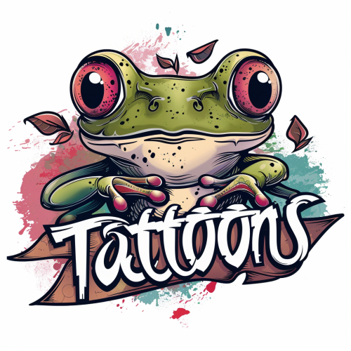 logo for tattoo studio of a frog with several eyes with the text "Tattoons" integrated vectorized, white background --v 6.0