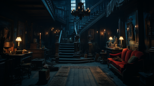 interior of an old haunted Victorian house, cinematic, hyperrealistic, 8k, cannon eos 1dx mark II, q2, s800 --ar 16:9 --s 250