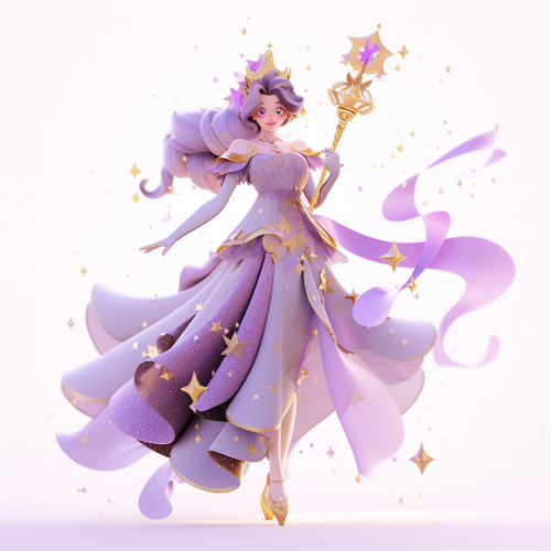 magical girl,magical princess, purple and white and gold color,Pixar,3d, full body shot,disney,white background, --niji 5