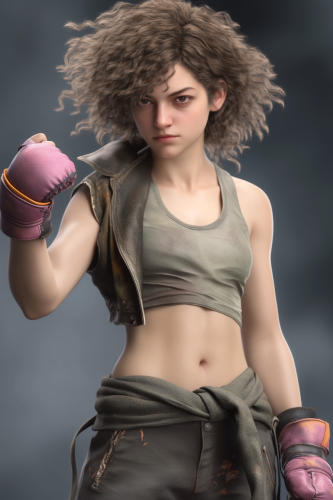 asian woman mma fighter, full body shot, silver background, octane render, 3D, ray tracing, 8k, depth of field, full body, centered --no out of frame, text, username, logo, tattoos --niji 5 --style expressive --s 400 --ar 2:3