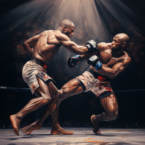 promotional photograph of a heavyweight english mma fighter, he is seen posing in a fighting stance in the middle of the octagon before a fight, The portrait of the fighter must highlight his uniqueness and determinationultra realistic, 16k HD, ufc show lights, --v 5.2 --ar 2:3