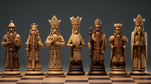 Six types of chess figures concept, king, queen, rook, bishop, knight and pawn, front view --v 5.2 --ar 16:9