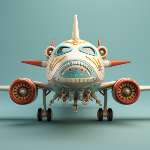 AirPlane with chinese eyes, big lips and seagull wings, rendering 3D