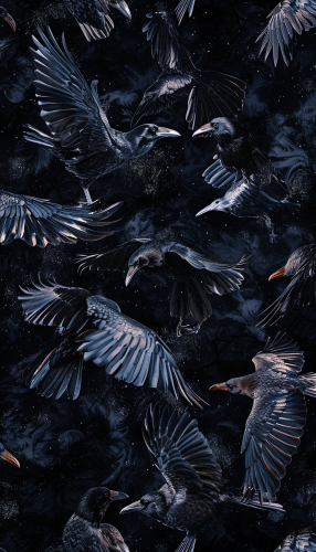 Celestial Caw, Cosmic Ravens, Digital, 3D Embroidered pattern --ar 4:7 --v 6.0