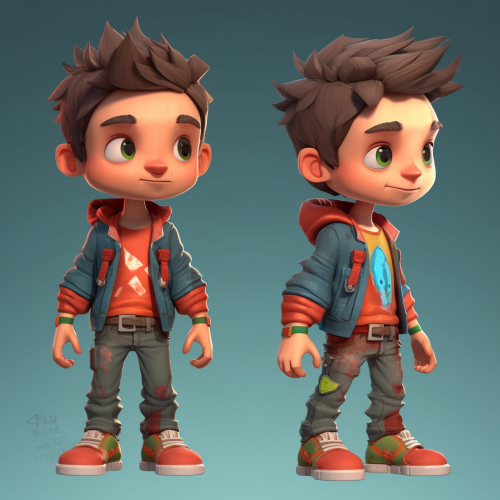 cute and colorful 3d character design, a boy, character sheet, front and side --v 5.0 --s 750