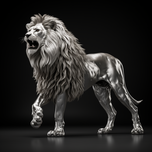 simple silver 3D model monochromatic of Ethiopian lion full body from aside on black background