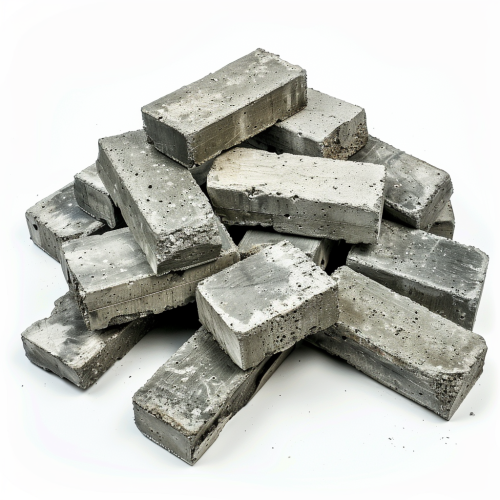 a pile of concrete blocks. organized in a tour. white background --no cube
