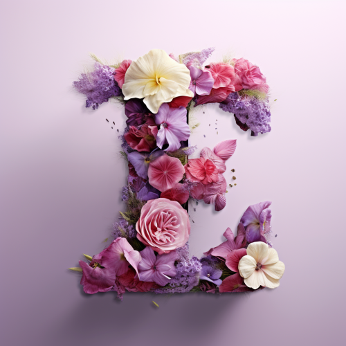 Letter "T"with flower elements, flower, made of flower, 3D, studio lighting