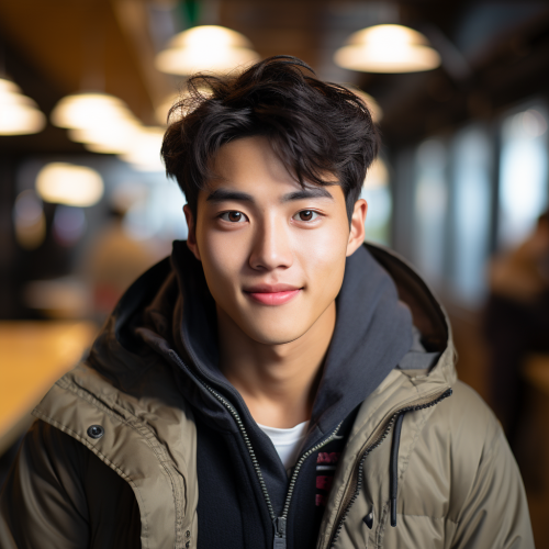 portrait of a smiling person after making an easy decision. Canon camera with an aperture of 5.2 . Orange hues. Bright environment --s 300 --c 15 --v 6.0 --ar 9:16