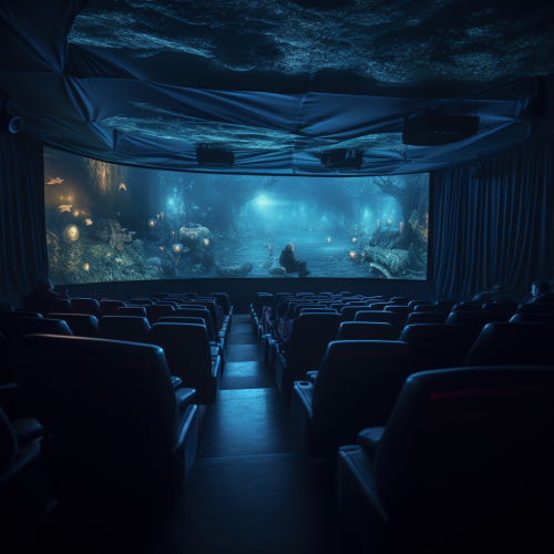 a 4D cinema where audiences are captivated by the grandeur of Minas Tirith in The Lord of the Rings. Meticulous details unfold on screen, and immersive effects bring the city to life in the theater. Viewers collectively feel the wind, vibrations, and epic visuals, fully immersed in this cinematic journey. --ar 9:16 --v 6.0
