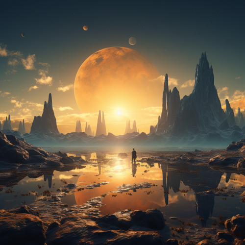 low gravity optimistic minimal landscape, ecotopian solarpunk level shot, 8K resolution, Cinema 4D, Unreal Engine 5, rendered in Blender, sci-fi, futuristic, trending on Artstation, epic, cinematic background, dramatic, atmospheric, sunrise lighting, cinematic lighting, epic --style raw