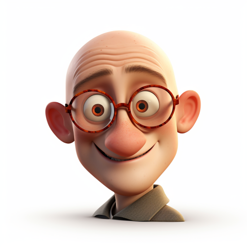 generate a bald man holding a computer language and a bookshelf behind him but make this blurry because its the background but on the forground there is a laptop with chat gpt open already having an answer and also make this in cartoon style